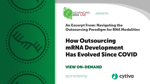 Advancing RNA panelists Alex Aust, Qian Ruan, and Andy Geal share their thoughts on the ways in which outsourcing firms are approaching mRNA development today, as well as why outsourcing — as opposed to building a GMP facility — remains critical for (x)RNA biotechs today. |