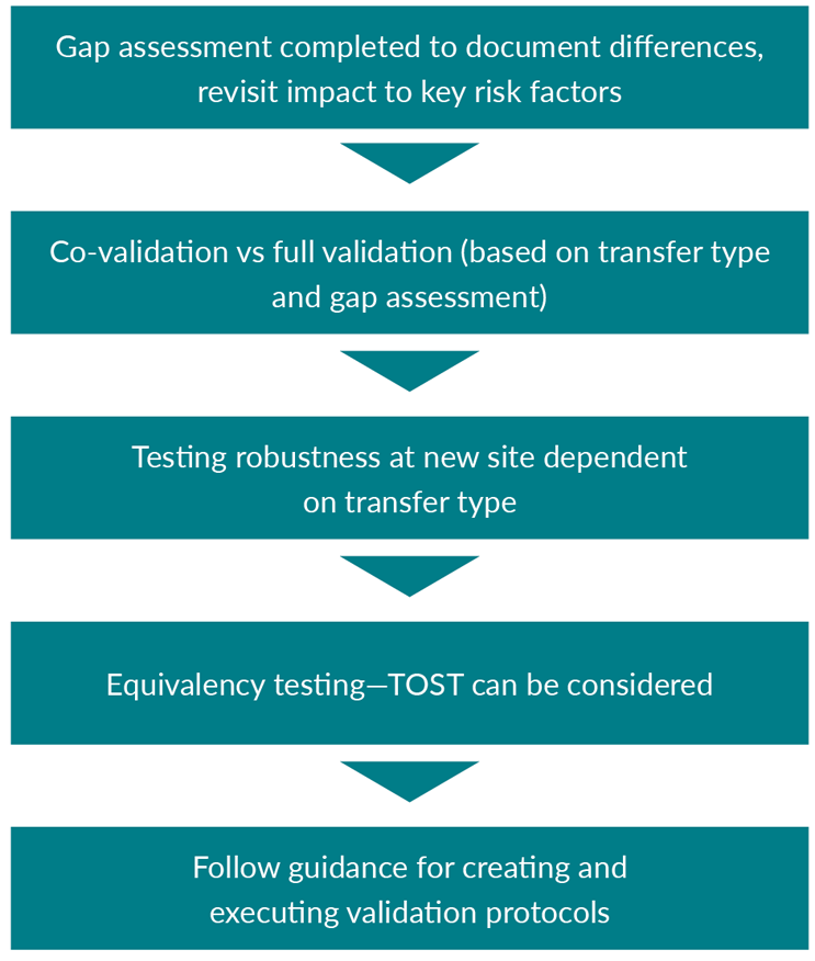 If a method needs to be qualified or validated at another site, processing area, lab, etc. (see flowchart in Figure 3 of steps for consideration), a supplementary validation should be performed to ensure the method can be used in the new space.