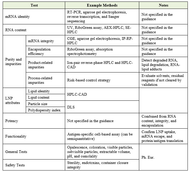The guideline sets clear expectations for release testing. Specification limits should be clinically justified in accordance with ICH Q6B. The following table summarizes the key attributes to be controlled and monitored at release of the drug product: