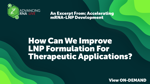 | | | By Advancing RNA Live |  | Life Edit Therapeutics’ April Sena and Tune Therapeutics’ Tyler Goodwin delve into where they see limitations in downstream processing technologies impacting our ability to scale-up high-quality mRNA-LNPs for large scale therapeutics. |  |  |