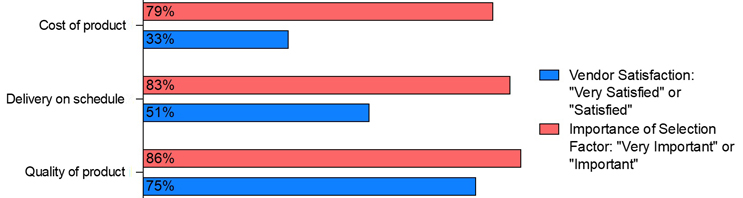 Figure 2: Selected data — importance of single-use product attributes vs. level of vendor satisfaction, data from 2024